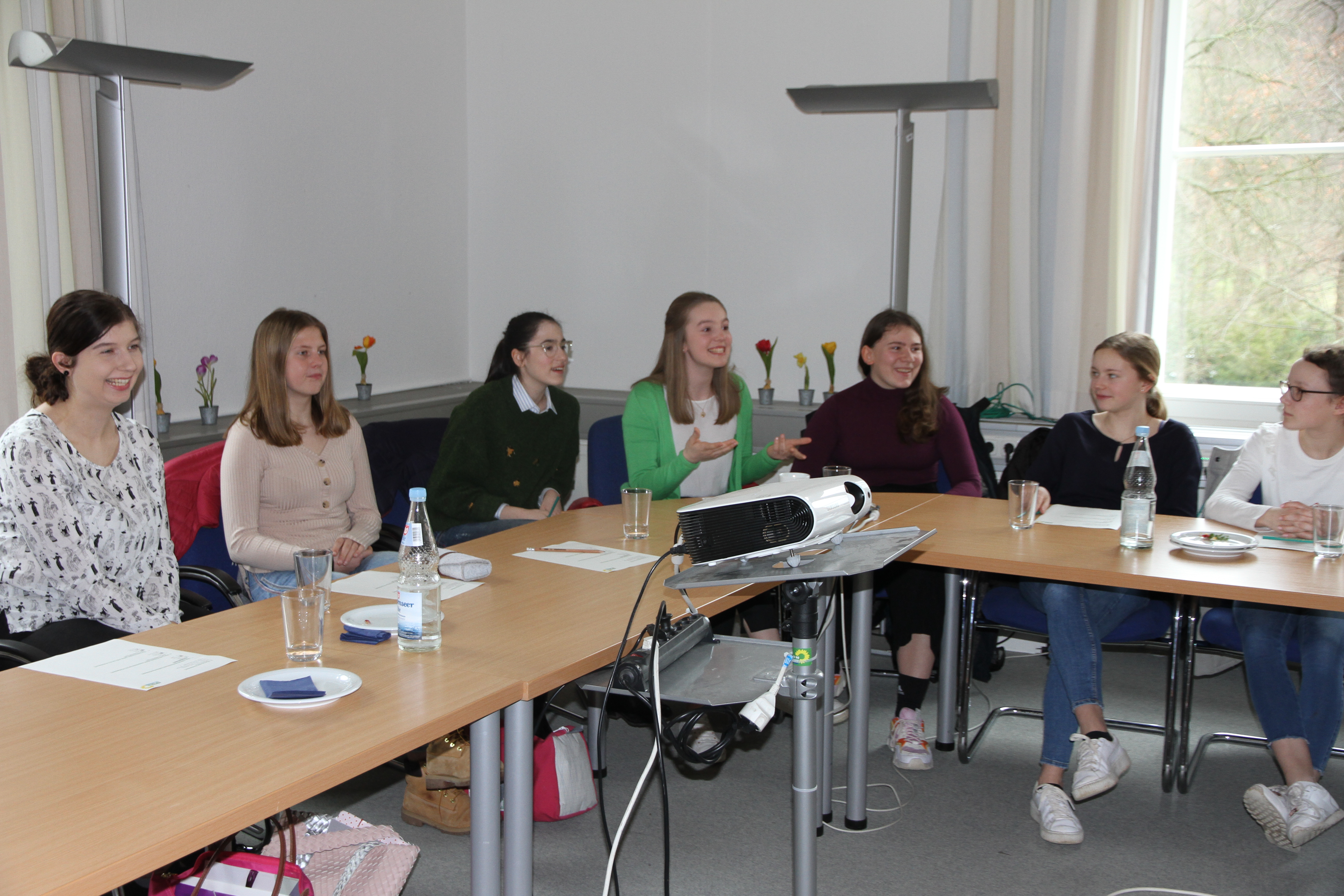 Um mehr junge Frauen für Politik zu begeistern, ist es wichtig, ihnen positive Vorbilder weiblicher Führungskräfte in Politik und Gesellschaft aufzuzeigen. Unsere weiblichen Politiker*innen und Mitarbeiter*innen berichteten den Besucher*innen von ihrem Arbeitsalltag, bevor es in die laufende Landtagsdebatte ging. Zum Abschluss lud unsere Fraktionsvorsitzende Eka von Kalben die Schüler*innen zu einem gemeinsamen Mittagessen in die Landtagskantine ein.